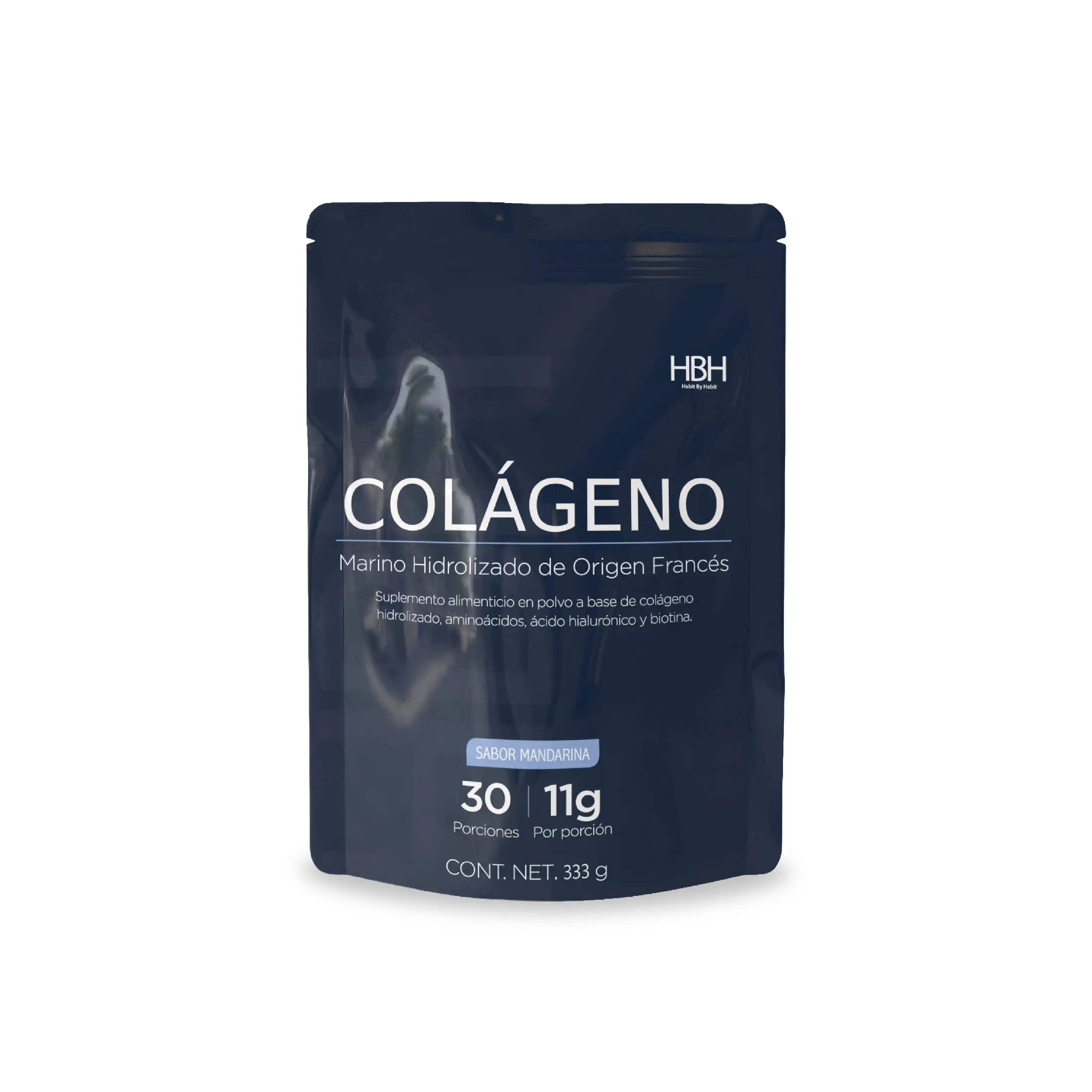 Colágeno Marino Hidrolizado (Peptan®), Naranja (Citrus sinensis), Inulina de Agave, L-Lisina HCL, L-Glicina, Vitamina C (Ácido Ascórbico), Ácido Cítrico, Ácido Hialurónico, Sabor artificial de mandarina, Sucralosa (29 mg / 100 g), Vitamina B7 (Biotina).